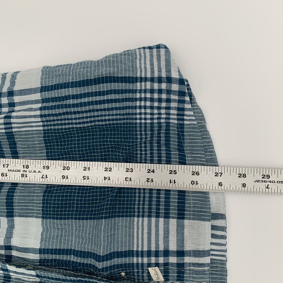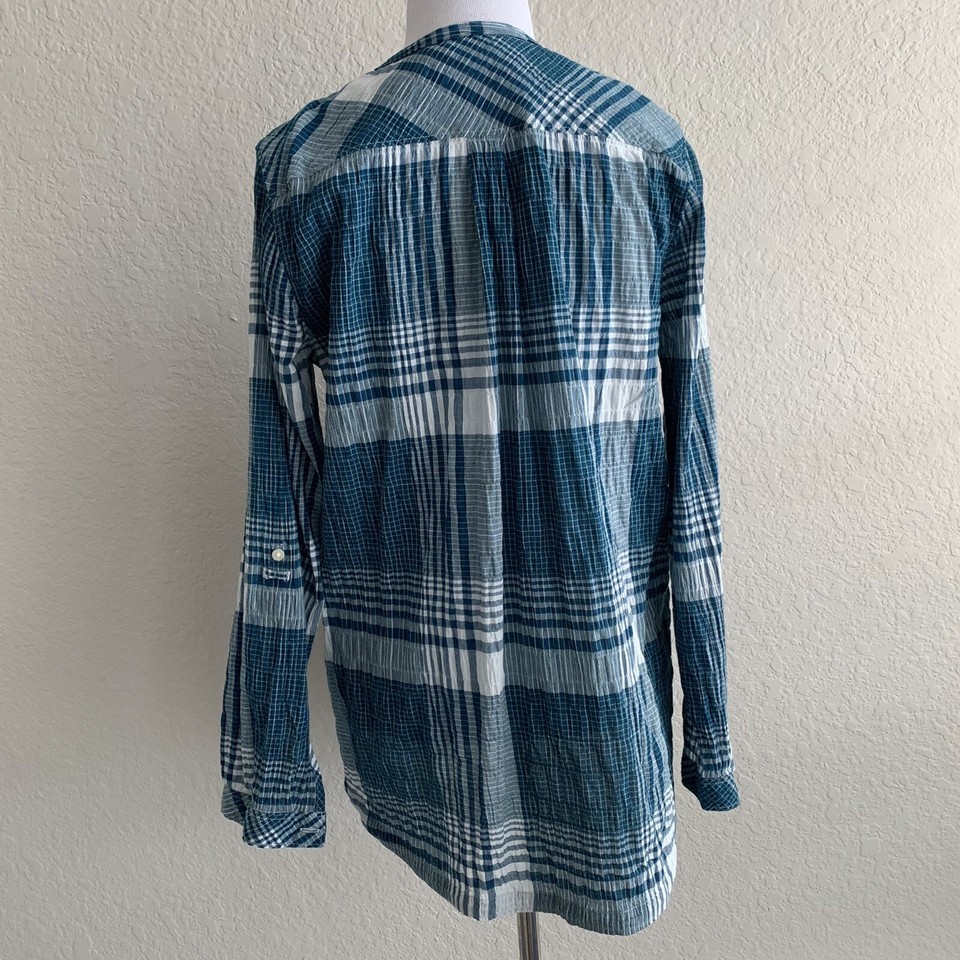 - Woolrich Womens Button Up Shirt Size Small Blue Gray Check Plaid Long Sleeve
