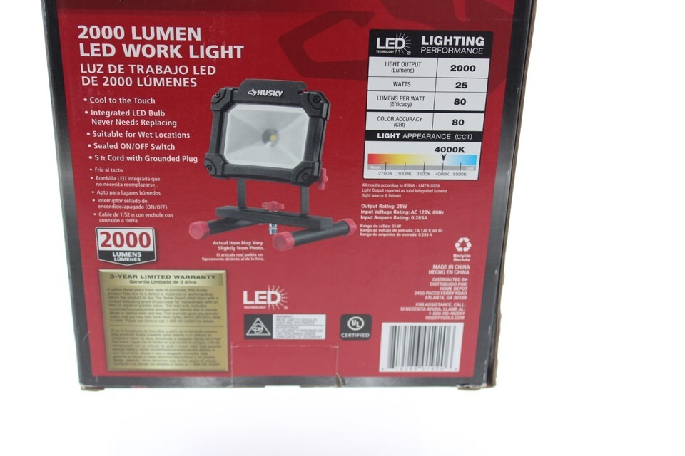 The Husky 2000lm LED Portable Work Light is a powerful and portable lighting solution perfect for various projects in your workshop or at home. With an impressive 3500 lumens of brightness and more than 10 hours of operating time, this work light ensures you have ample lighting for any task. The corded power source provides consistent and reliable light, while the LED technology offers energy efficiency. This sleek black work light is easy to transport with its compact dimensions and is a must-have tool for any DIY enthusiast or professional tradesperson.