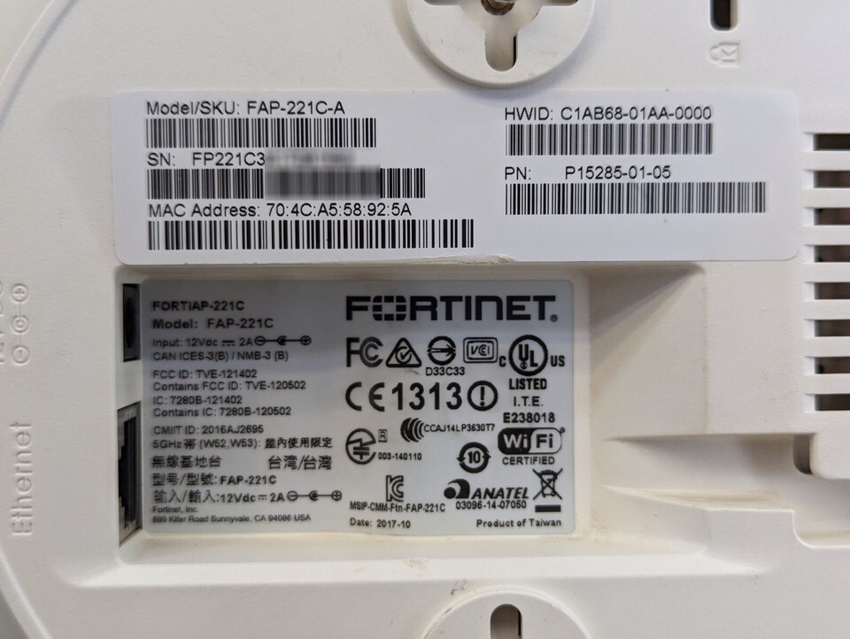 - Works Fortinet FAP-221C Indoor Access Point + Cables