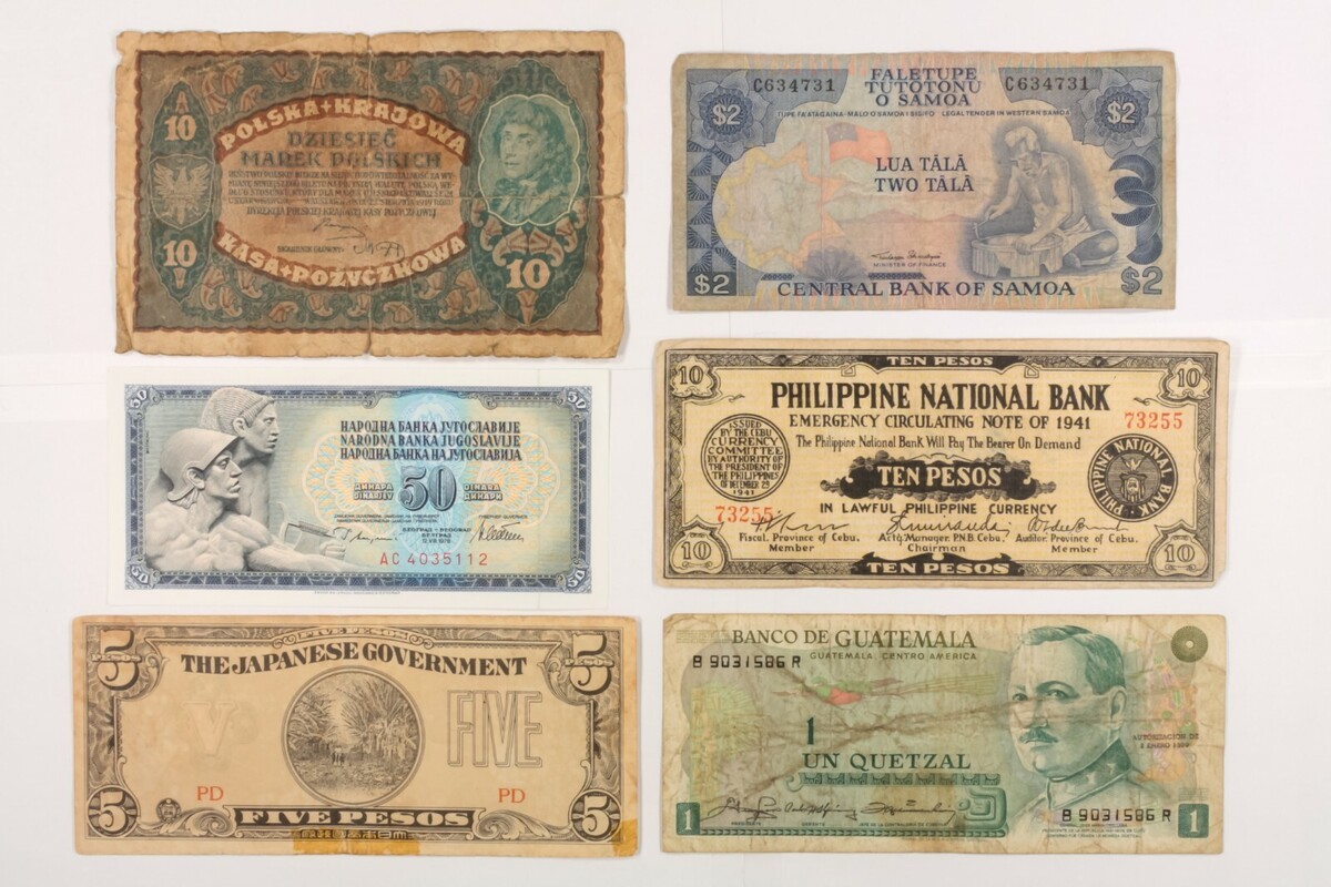 70 notes from Europe, Asia, Central and South America. Most notes are old, worn, torn or dirty, but some are very interesting and not all common types. Visit Our Store: Continental Coin and Jewelry All shipments include insurance and delivery confirmation or signature confirmation. Local Pick-up is available in our showroom. (Contact us for payment methods to pay on pickup.) *The customs requirements for each country, including all import duties, taxes, and fees are the responsibility of the buyer. All international packages will have the required customs declaration and value of order. Returns policy: Your continuing satisfaction is very important to us. We offer a 30 day money back return policy. If you are unhappy with your purchase for any reason, please notify us so that we ca