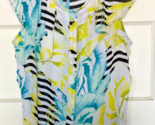 Worthington Floral and Striped Sleeveless Top Size M. This vibrant sleeveless top features a striking floral and striped design. Perfect for adding a pop of color to your wardrobe. Armpit to armpit measures 19?. Shoulder to hem is 24?. Buttons are hidden under front placard. 100% Polyester and Machine Washable. Excellent Used Condition - See photos for further description.