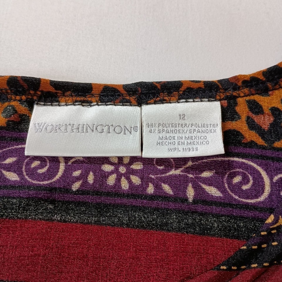 - Worthington Womens Multicolor Pattern Blouse Top Size 12 Casual Sleeve