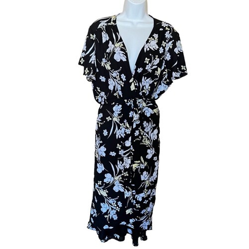 Worthington Women's Plus Size 2XL Short Sleeve Black/White/Yellow Wrap Front Floral Dress