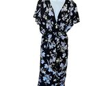 Worthington Womens Plus Sz 2XL Black/White/Yellow Wrap Front Floral Dress