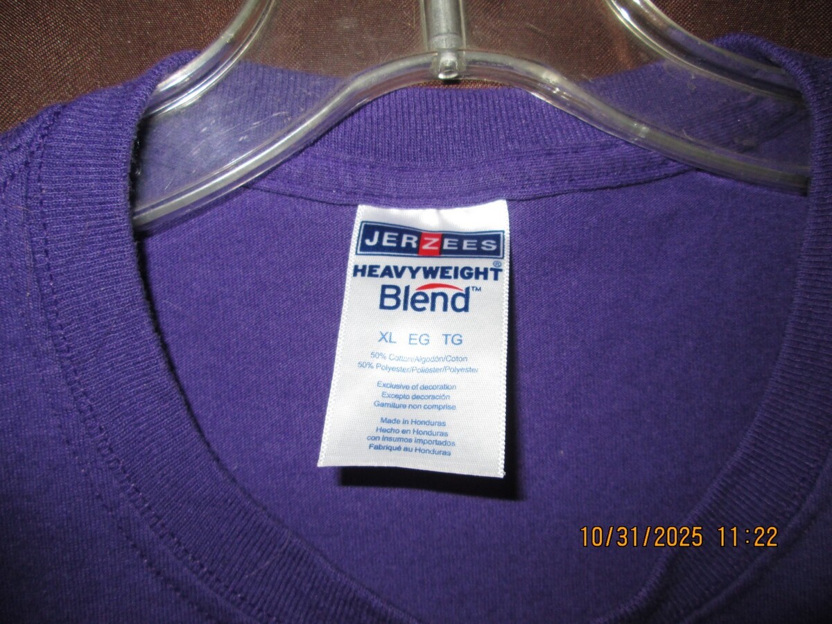The Wow Conference 2015 SPRINGTIME IN OUR SOUL Purple T-Shirt in size XL is a stylish and comfortable option for women or men looking to add a pop of color to their wardrobe. Made from a blend of 50% cotton and 50% polyester, this short-sleeve tee features a crew neckline and is perfect for casual everyday wear. The basic style and vibrant purple color make it a versatile piece that can be easily paired with jeans or shorts for a trendy and effortless look. If you have any questions, please content me. Thank you and GOD BLESS.