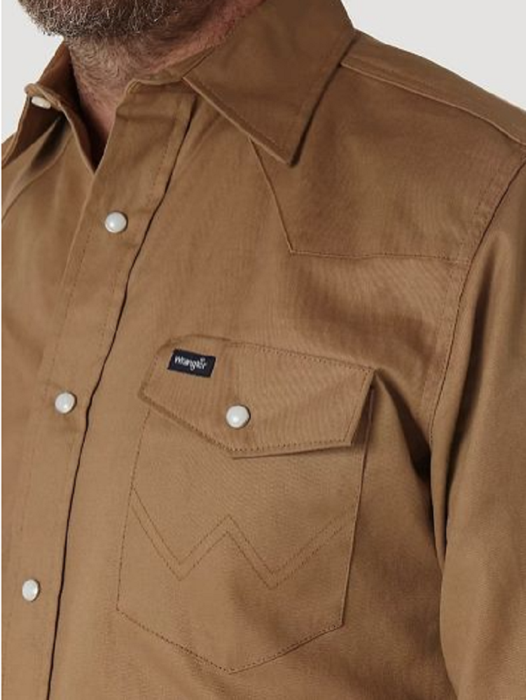 Wrangler MS721SL Men's Cowboy Cut Western Firm Finish Work Shirt, Rawhide, Large