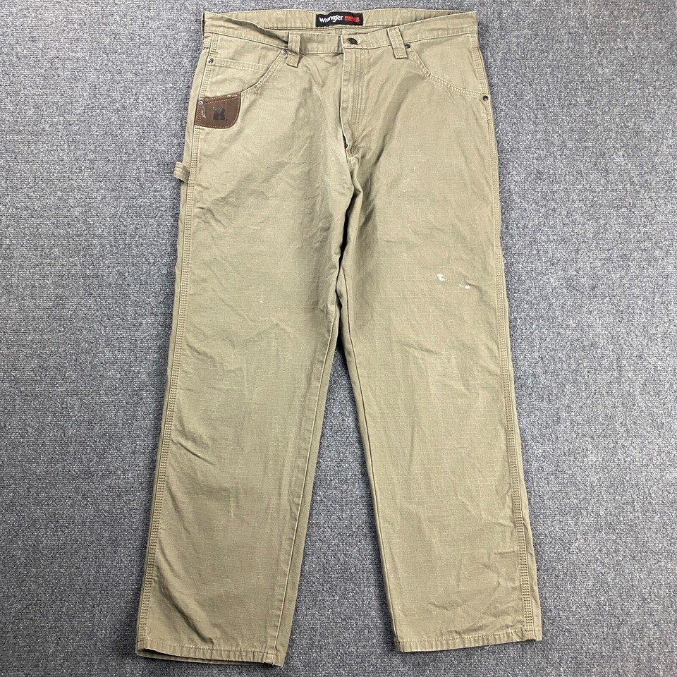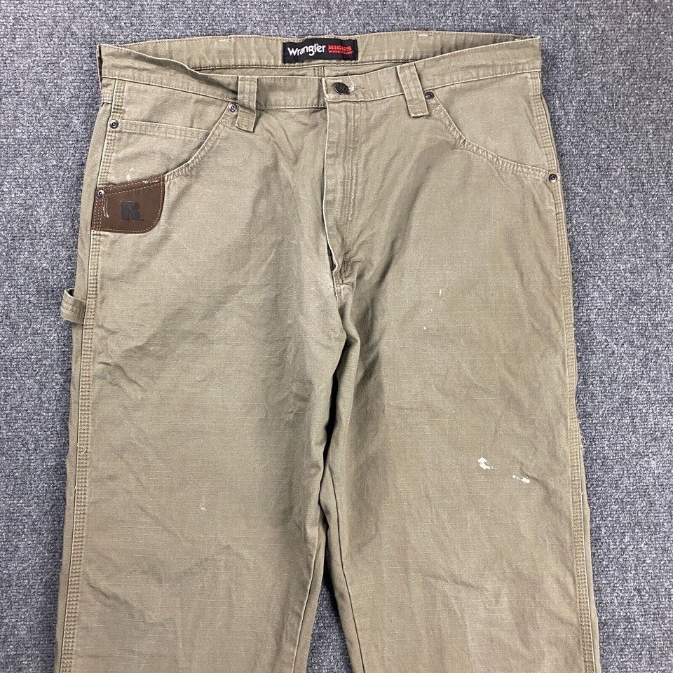 - Wrangler Riggs Carpenter Pants Men's 38x32 Beige Paint Splattered Workwear