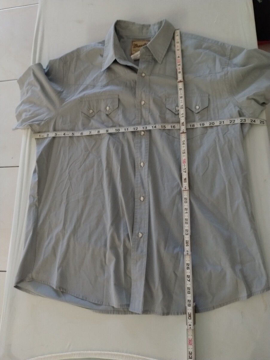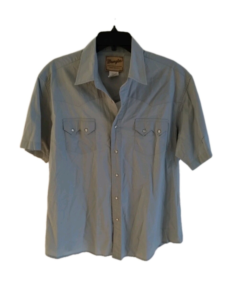 - Wrangler Shirt XL Gray Green Olive Western Pearl Snap Pockets Cowboy Rancher