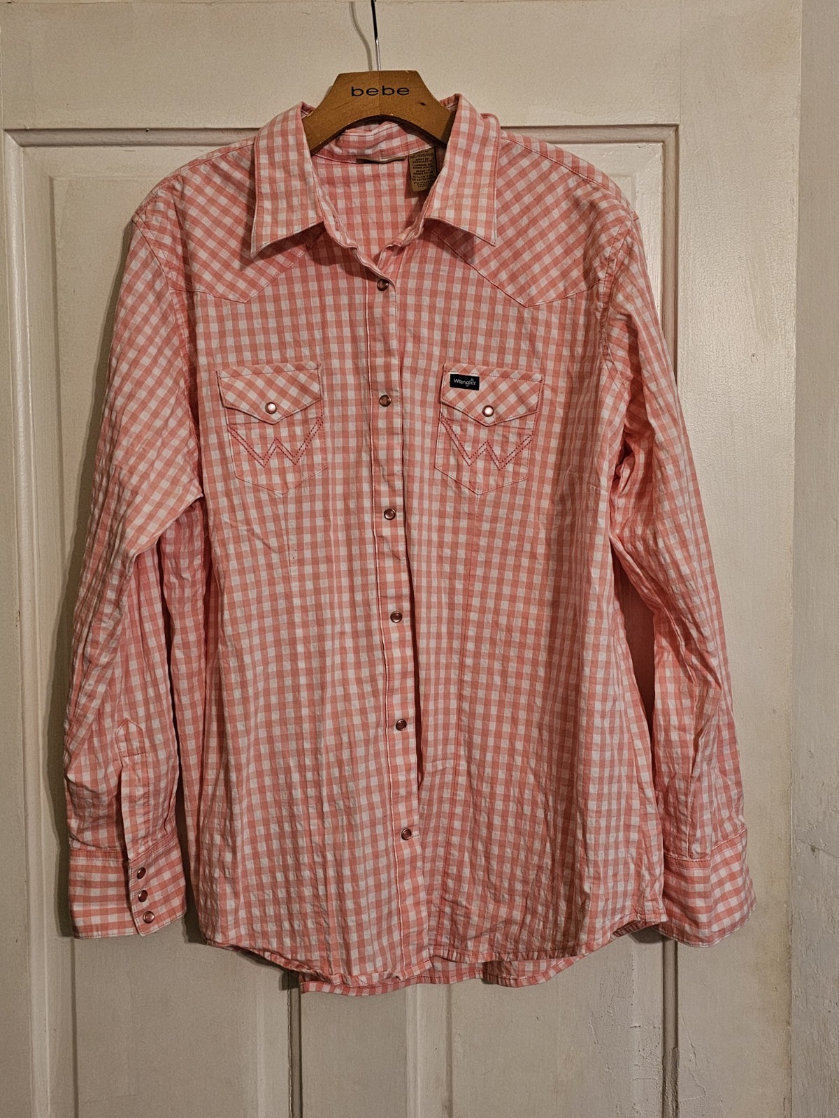 - Wrangler Womens Shirt Long Sleeve Pearl Snap Gingham Plaid Western Ranch XXL