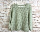 Wrap London Alpaca Merino Wool Blend Lace Stitch Sweater Size 12 - 55 baby alpaca 24 polyamide 21 merino wool - delicate eyelet stitch with round neckline and wide raglan sleeves that hit above wrist. Light green