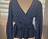 - Wrap Long Sleeved Top Blouse Heart Print Navy Blue Women's LG, Pre-Owned