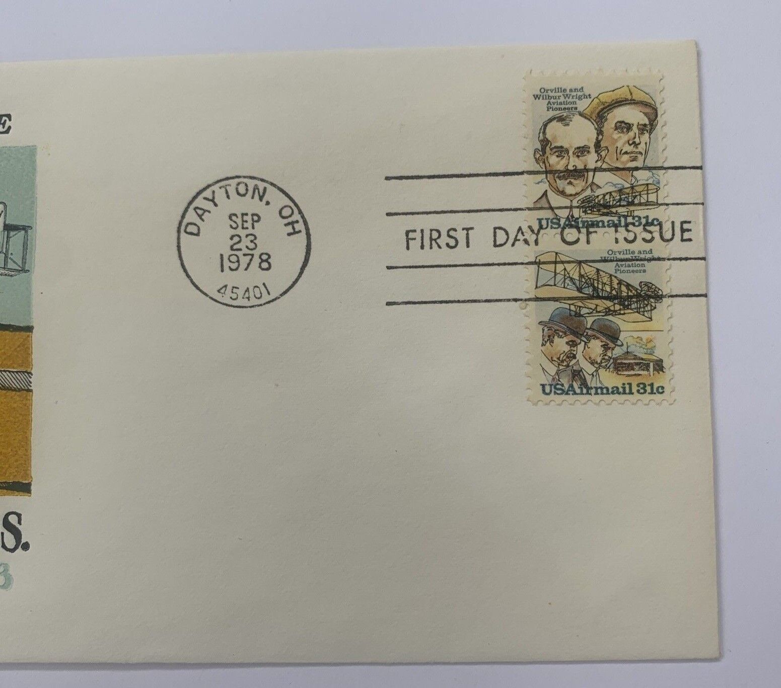 - Wright Bros Commemorative Kitty Hawk Mail Cover & First Day of Issue Stamp 1978