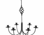 Here is a new smaller size hanging candle chandelier, this is for use with battery candlesticks or candlesticks, is not electric,This 6 Arm Hanging Candelabra chandelier has a basket design is the perfect accessory for that dark corner in your home where it is not convenient to run electric wires. The chandelier holds 6 regular candles or 6 battery operated tapers of 1" diameter (candlesticks not included), this is a neat chandelier , and a hook to hang on is NOT INCLUDED,and Below is description on it, make sure you measure space before you buy please, and also check out my other new wrought iron lights and my many other nice Home decor and lighting i carry.