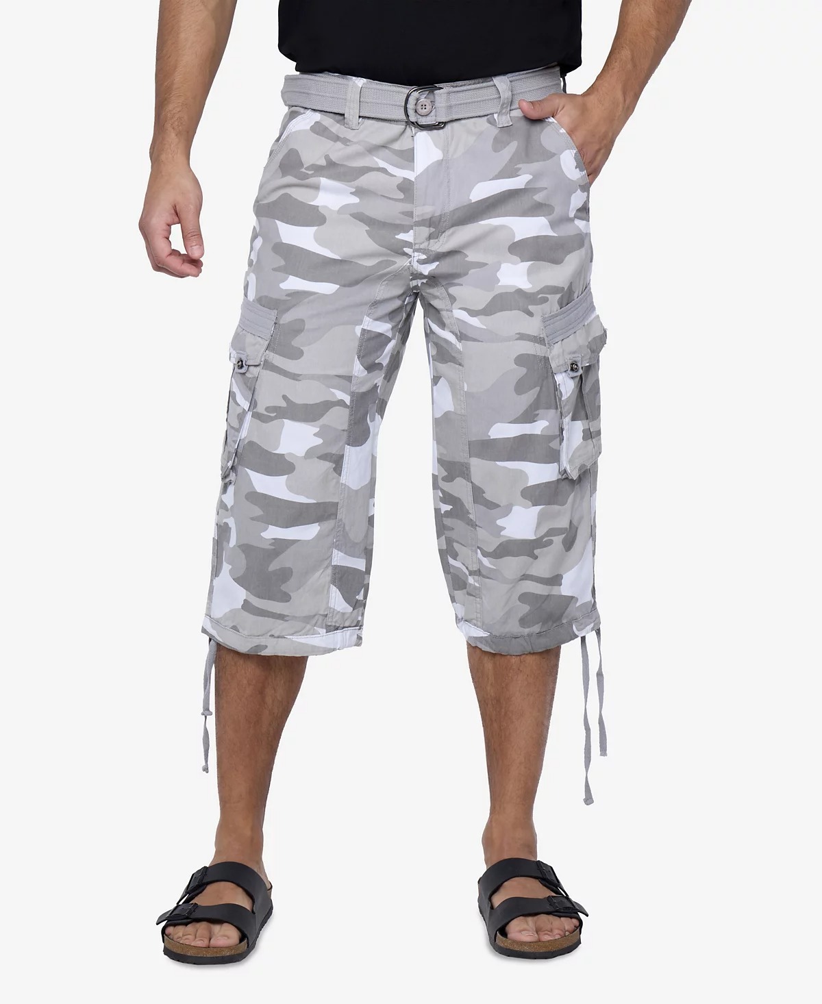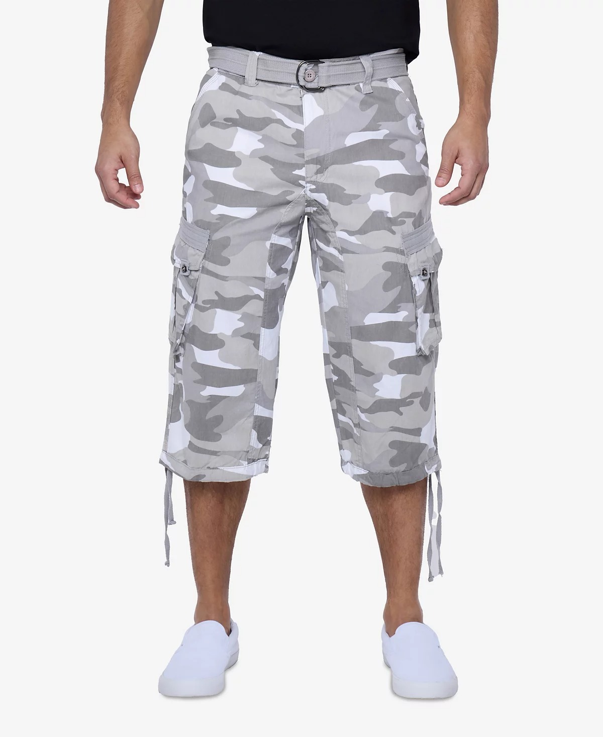 - X-Ray Men's Belted Capri Cargo Shorts - White Camo-33W