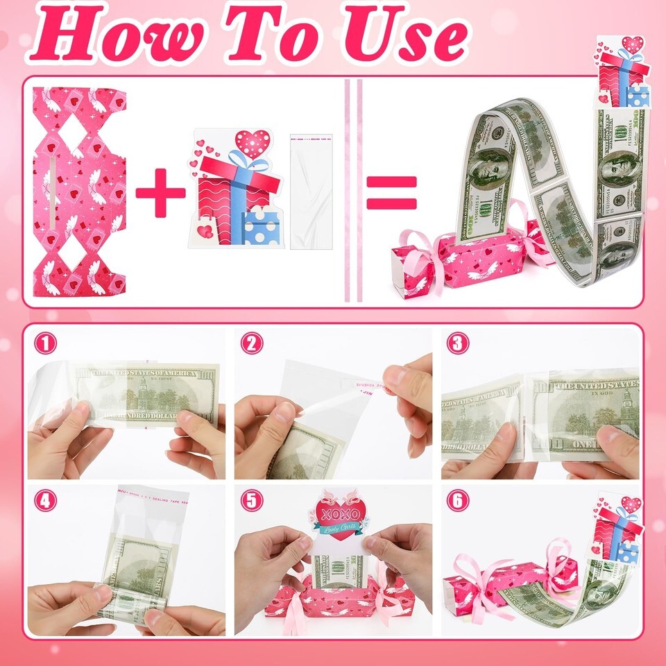 Easy and Fun Money Presentation Forget the boring old envelopesthis money pull box for cash gifts is an exciting and easy way to present your Valentine's Day gift. Simply slip the cash inside, seal the box, and attach the pull tab. When the time comes for the big reveal, the money pops up in an exciting surprise. Ideal for anyone looking for a unique, fun twist on a traditional Valentines Day gift.