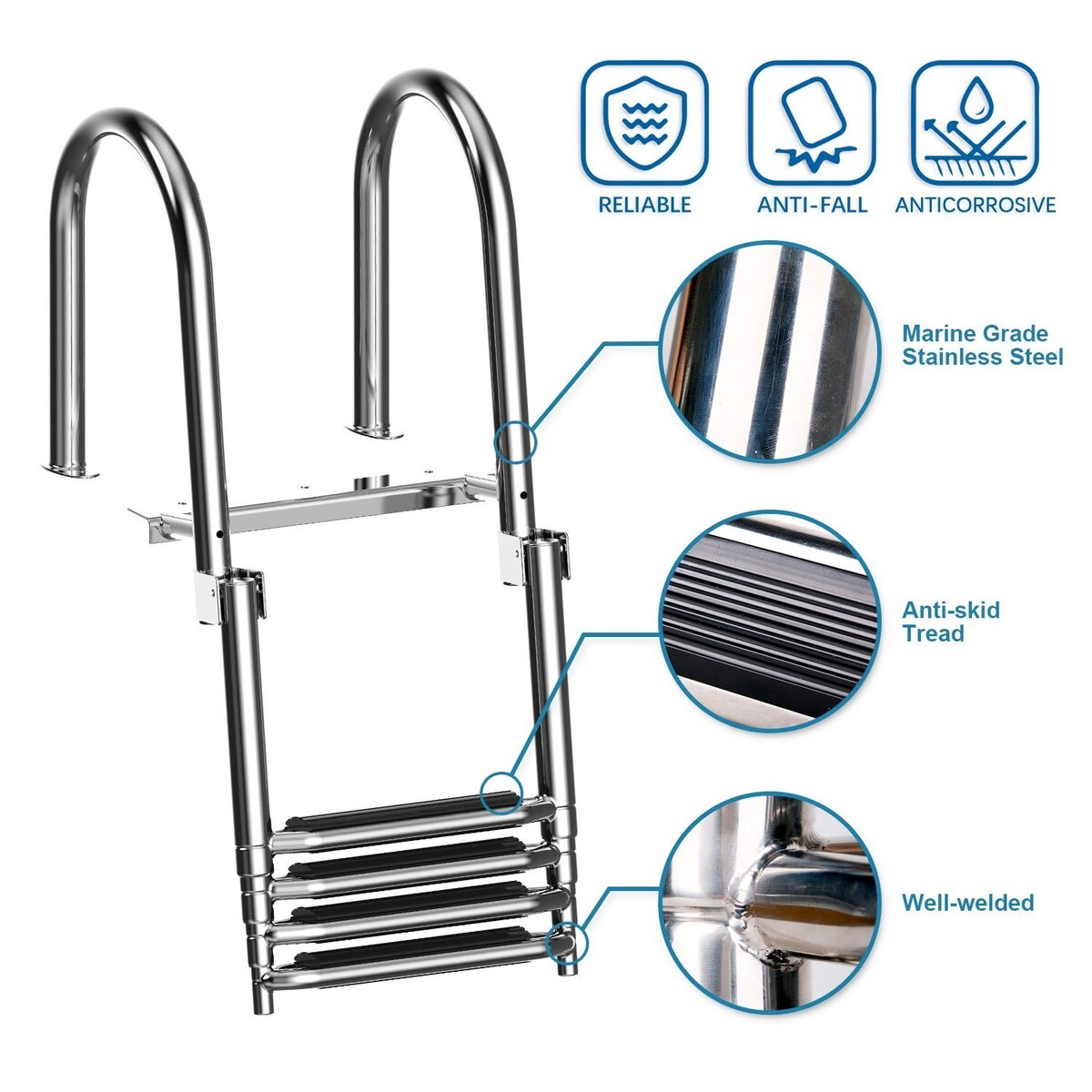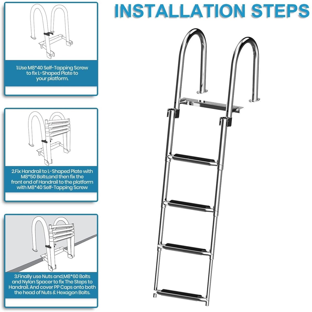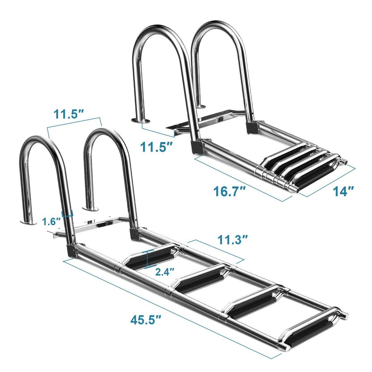 - XGEAR 4 Step Pontoon Boat Ladder, Foldable Stainless Steel Marine Telescoping
