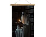 Unique Halloween Design: Features a ghostly figure reading a book by candlelight in a dimly lit library, perfect for adding a mysterious and spooky touch to your Halloween decor.