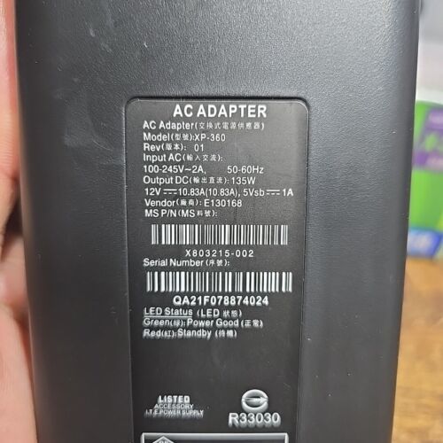 Get the XP-360 AC Adapter 12 Volt Charger Power Supply for Xbox 360. This AC/AC adapter comes with a 1:2 connection split/duplication and is compatible with Microsoft. The adapter is powered and has an output voltage of 12 V.