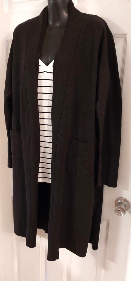 XXL Black Long Cardigan & New White 100% Cotton womens Top & Black 2x Lot