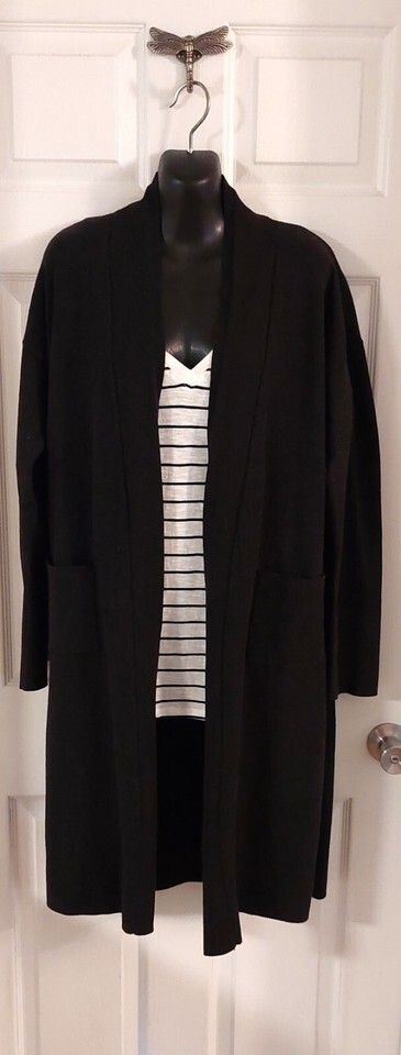 Capsule Wardrobe Basics Lot of 2 Women's Items ? Nice for Travel, Work, Every Day. Will look nice with black leggings, jeans, or khakis. This set includes a new with tags 100% Cotton Black White Striped Swing Tank from Ana in women's size XXL. About 24? underarm seam to underarm seam and 28? shoulder seam to the hem. The long duster is from A New Day (a Target brand). Open front, two pockets, side seam kick pleats, about 42? in length, Polyester Blend. Gently used. We are a smoke-free home.