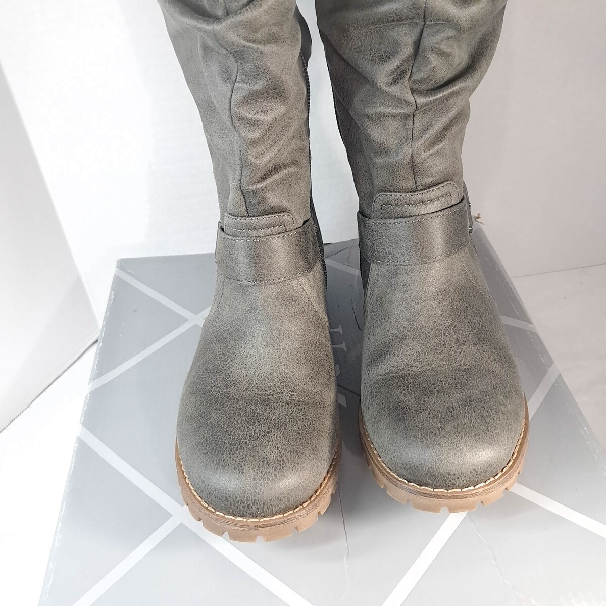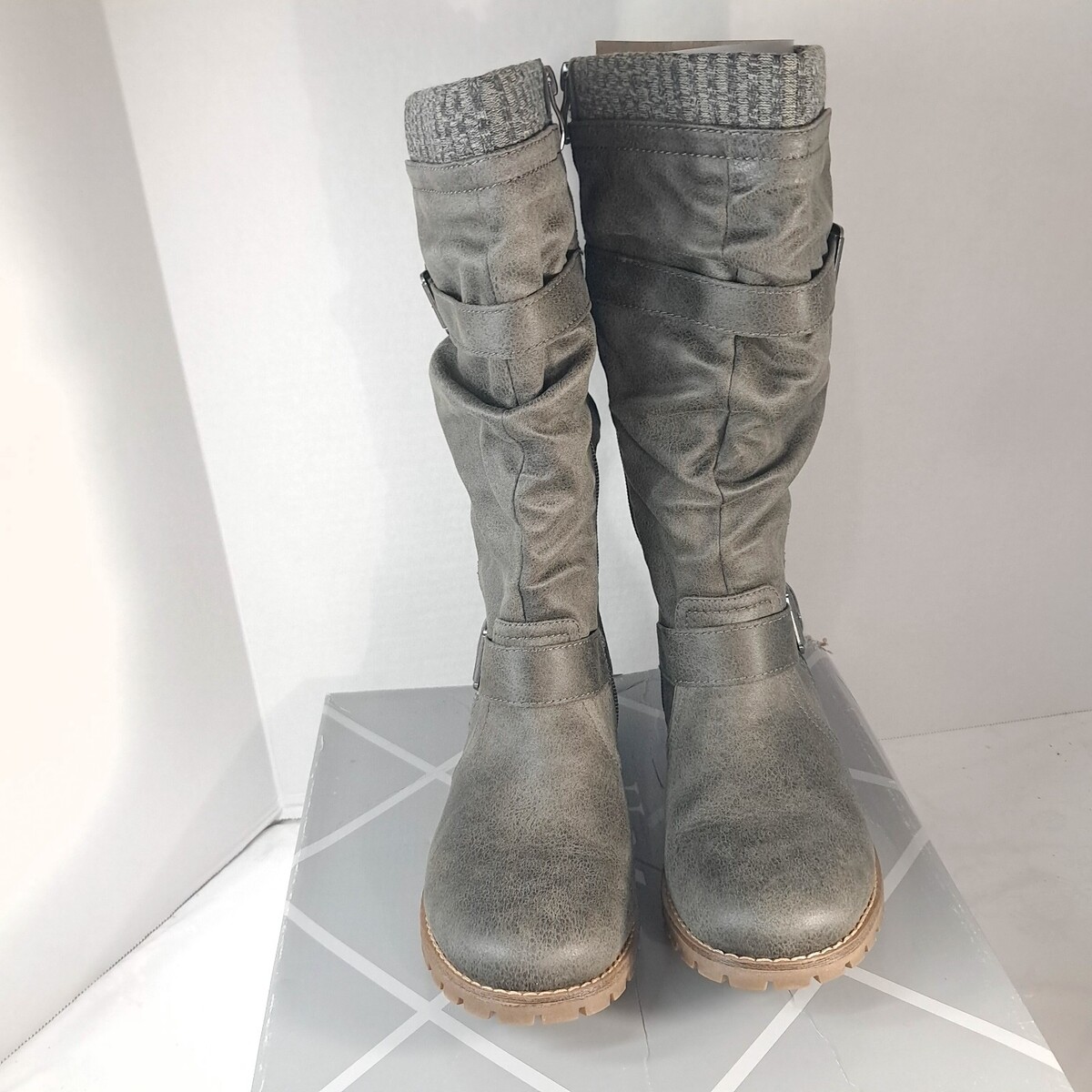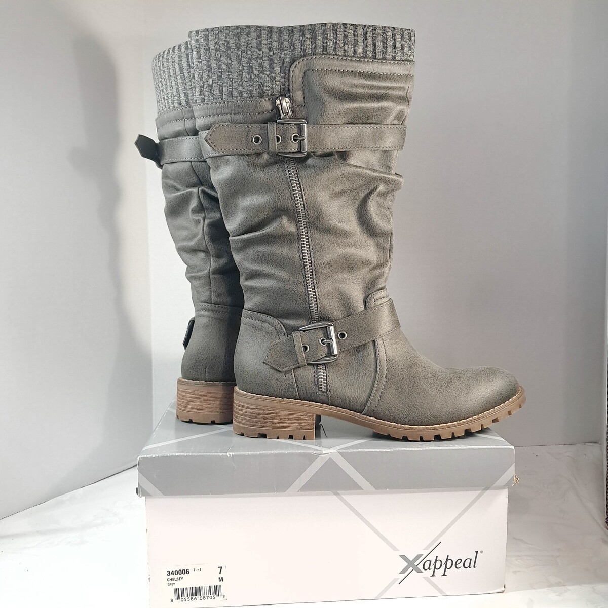 - Xappeal Chelsey Womens sz 7 M Riding Boots Knee High Buckle grey gray chelsea