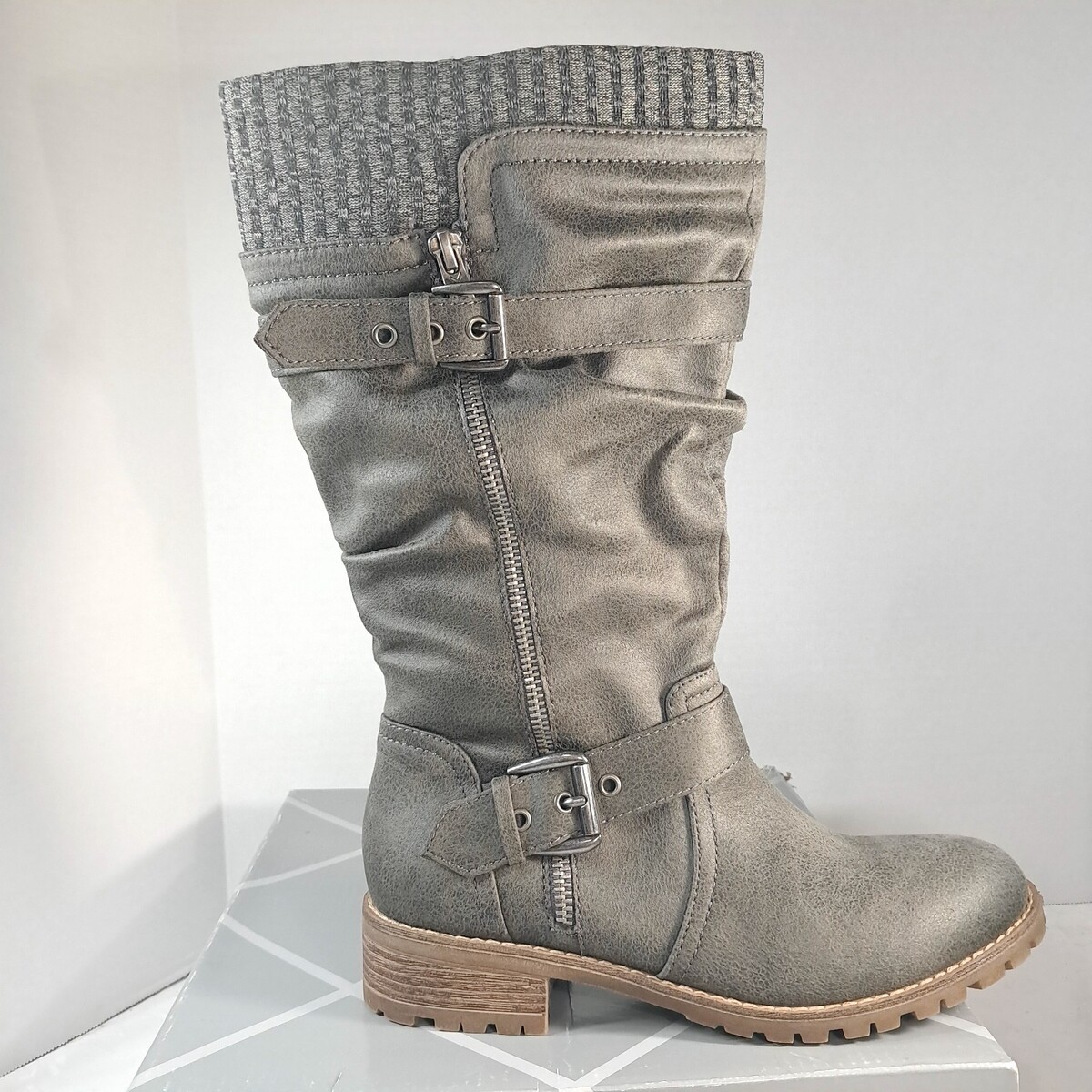 Xappeal Chelsey Womens sz 7 M Riding Boots Knee High Buckle grey gray chelsea