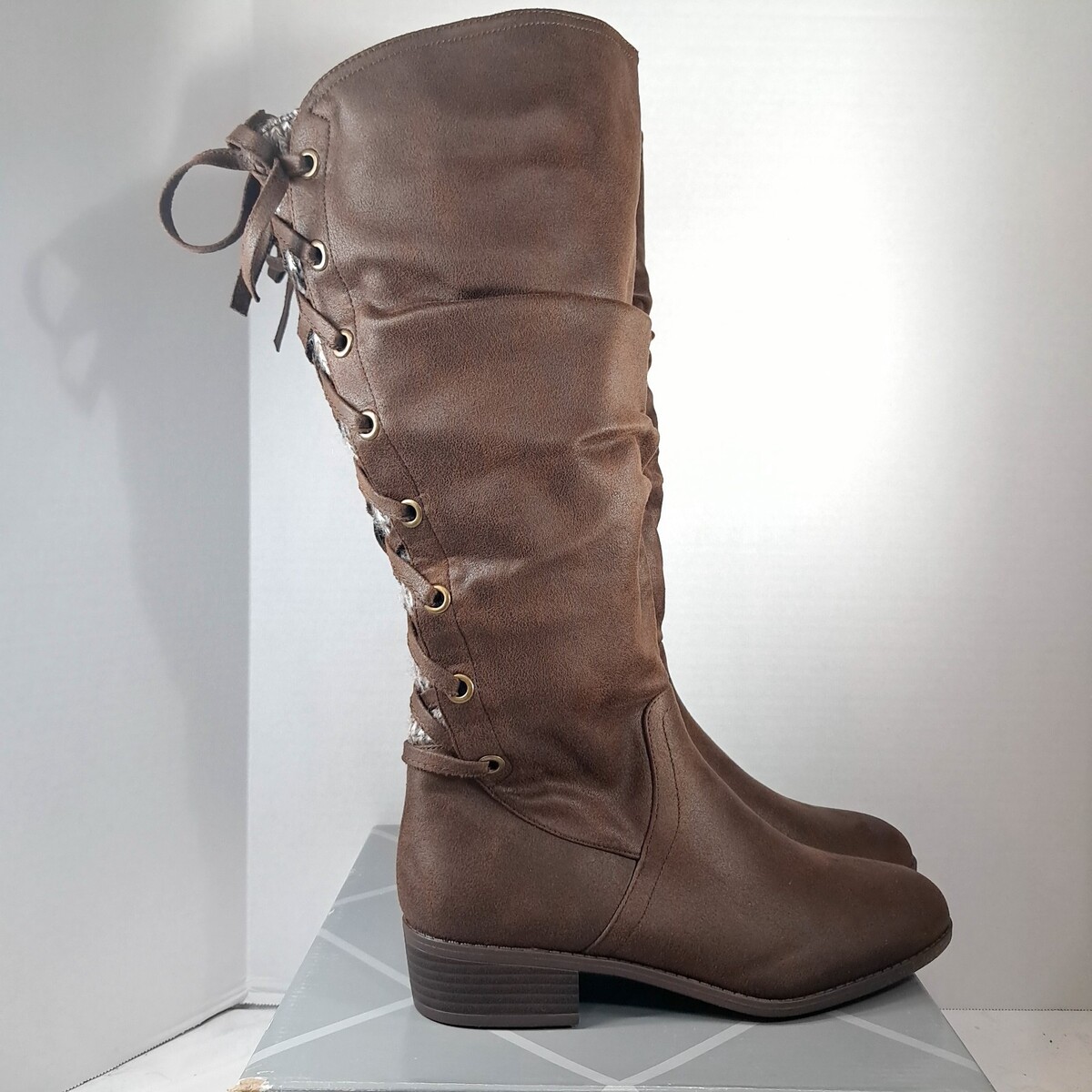 - Xappeal Womens Boot sz 7 M Wide Calf Cheyenne Brown Knee High Shoes corset laced