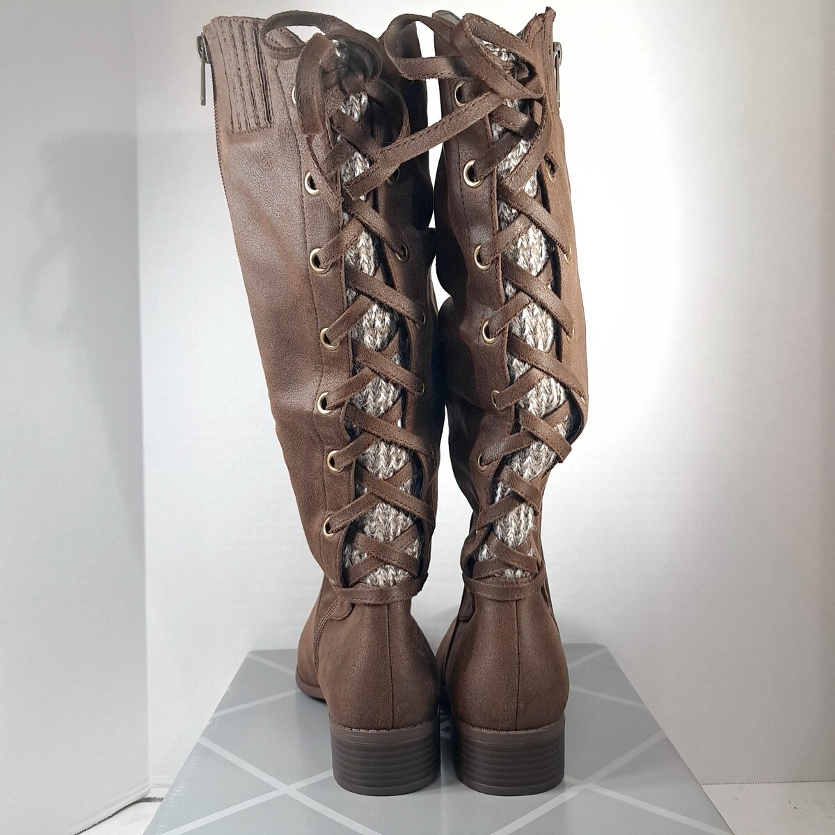 Xappeal Womens Boot sz 7 M Wide Calf Cheyenne Brown Knee High Shoes corset laced