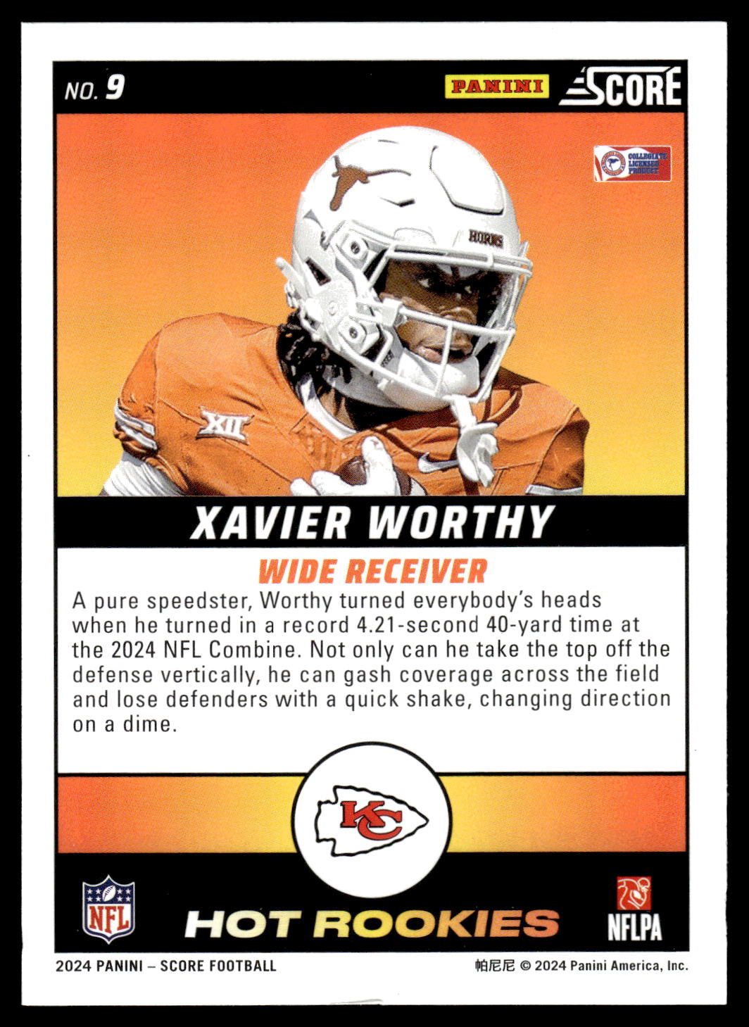 - Xavier Worthy RC 2024 Score #9 Hot Rookies Kansas City Chiefs Mint