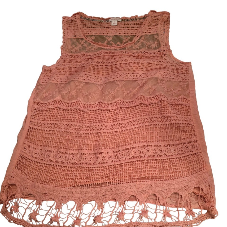 - Xhilaration Boho Tank Top S Salmon Pink Crochet Lined Sleeveless Festival Top