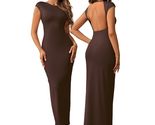 - XinFSh Women Plus Size Formal Maxi Dress Cap Sleeve Crew Neck Brown - Size L