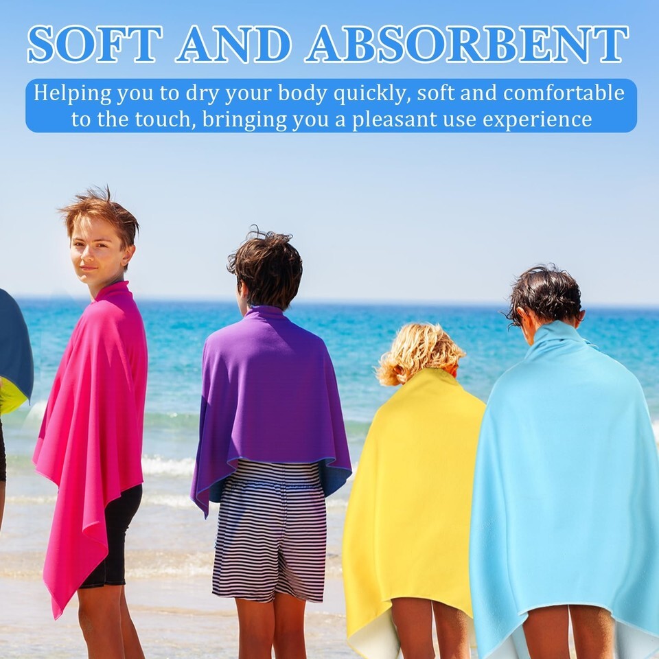 Feature: Large beach towels for ultimate comfort: Indulge in the relaxation with our large beach towels. Plush and absorbent towels, these beach towels will give you a nice and relaxing experience after a shower or a swim. Multi scenario: Our oversized beach towel are the appropriate size for home, swimming pool, hotel vacation, lounger, beach, boating trip, spa, sunbathing, diving, surfing, picnic, camping or tropical travel. Specifications: Material: microfiber Color: multiple colors Size: Bath towel: about 28 55 inches Hand towel: about 14 30 inches Package include: 8 x Beach towels 8 x Hand towels Warm notes: Please allow slight size error due to manual measurement. The colors may exist slight difference due to different screen.