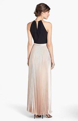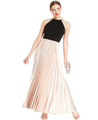 - Xscape New Black/Tan Halter Pleated Gown 6