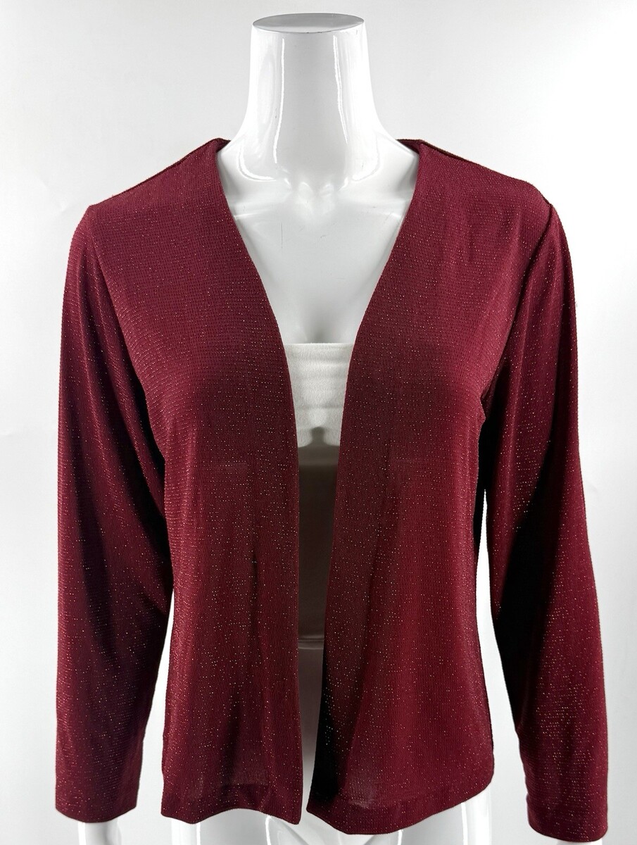 - Xscape Womens Jacket Top Sz Large Petite Red Sparkly Shimmer Evening Open Front