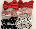 Add a pop of color and vintage flair to your favorite heels, flats, or loafers with this lot of 8 XunYee satin bow shoe clips. Set includes four matching pairs in bright red, blush pink, black with white polka dots, and white with black polka dots, each with silver-tone clip backs that attach easily to shoe fronts, sides, or straps. These oversized bows look adorable for parties, date nights, cosplay, and holiday outfits, and can also be clipped to bags, belts, or headbands for extra styling options?perfect little accents for festive Christmas and New Year looks.