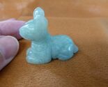 (internal #Y-DOG_LD-568) Excellent carving of a DOG - EGYPTIAN JACKAL GOD ANUBIS, SITTING, measures 1-1/2" long. Superb quality of PALE GREEN AMAZONITE gemstone, this gem has been hand-carved in China.