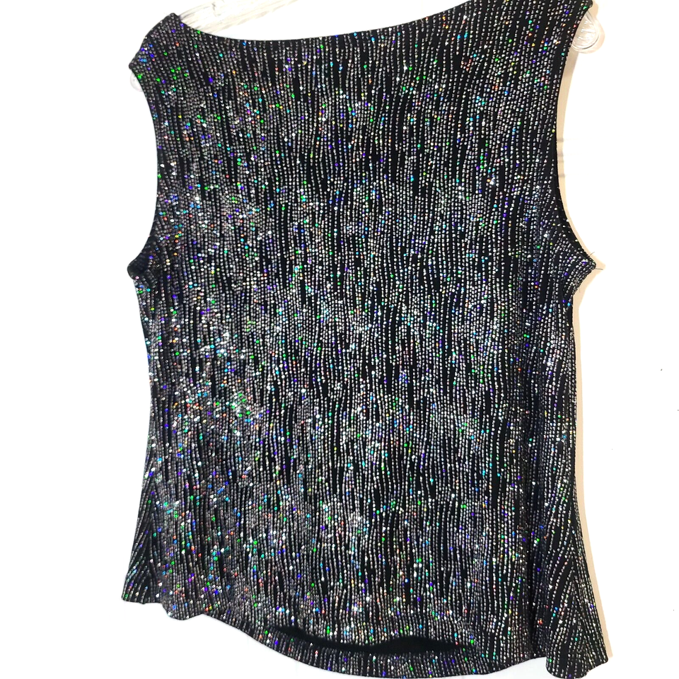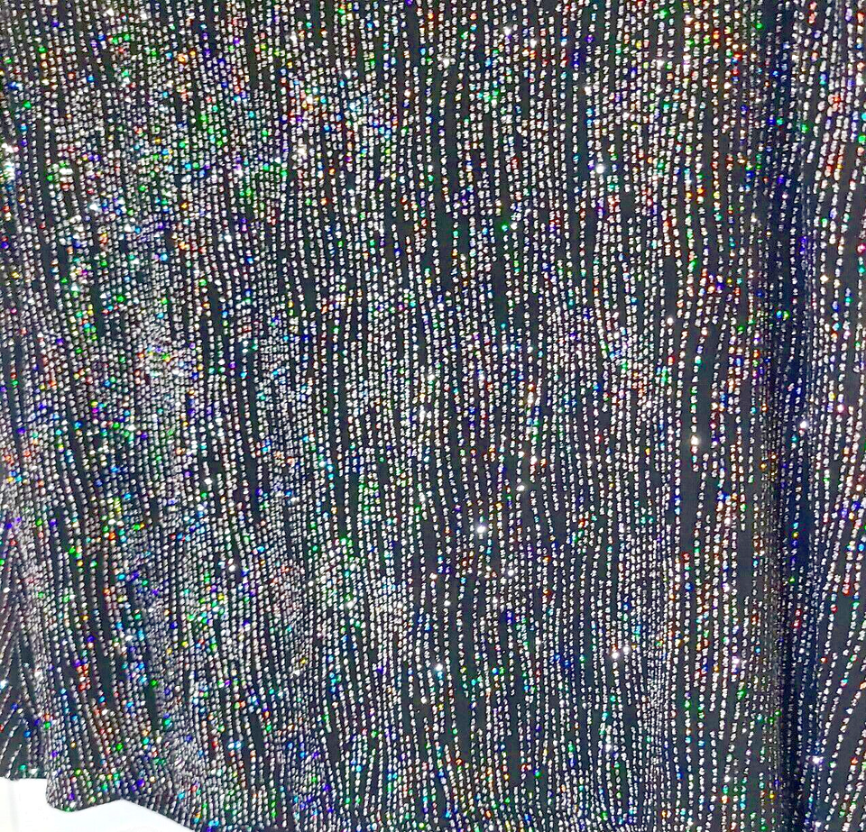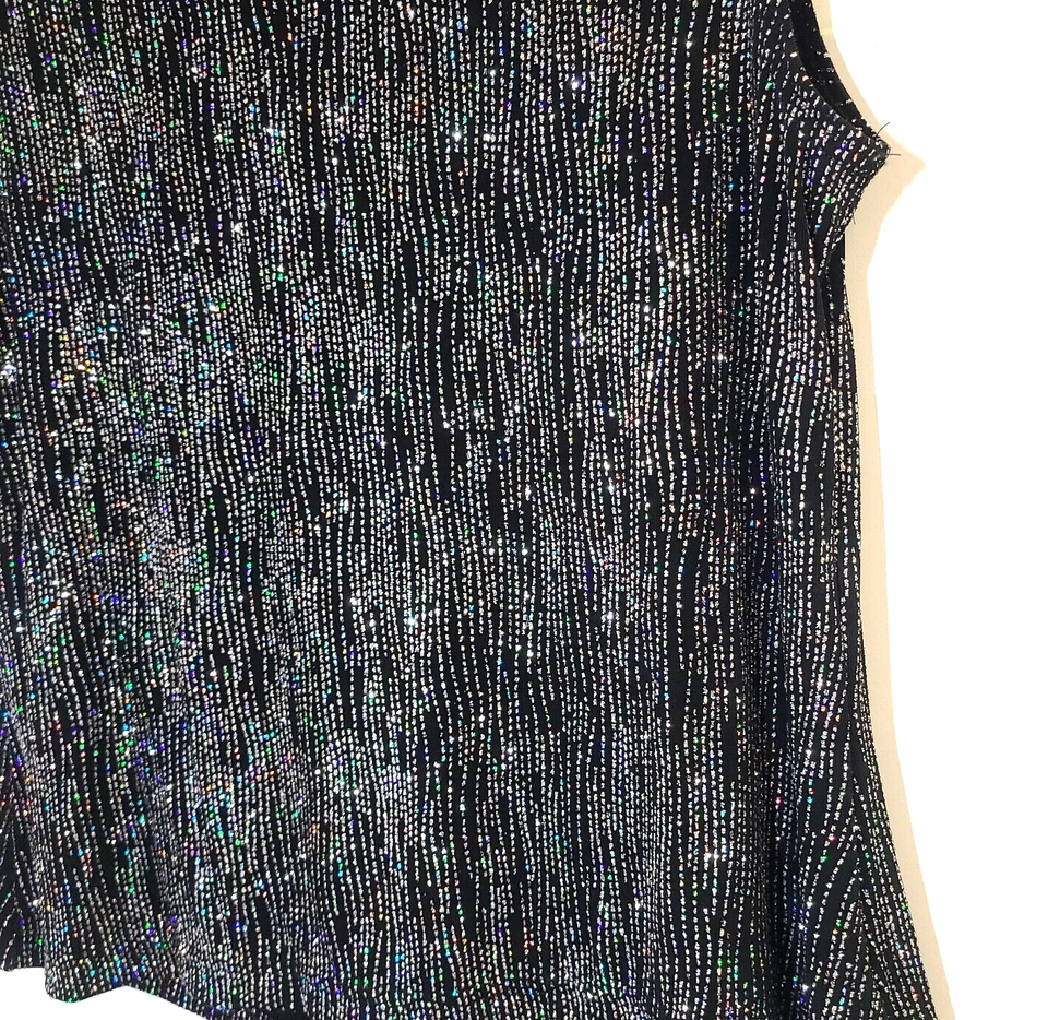 Style: Tank, Y2K, Vintage, 90's, Slinky Knit, Cowl Drape Neck with Weight on inside (see pic #3), Stretchy, Iridescent Sparkly Glitter