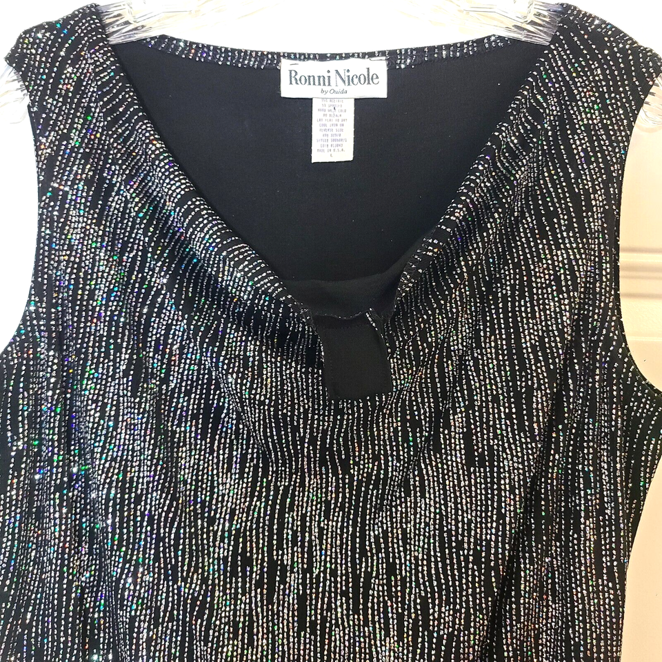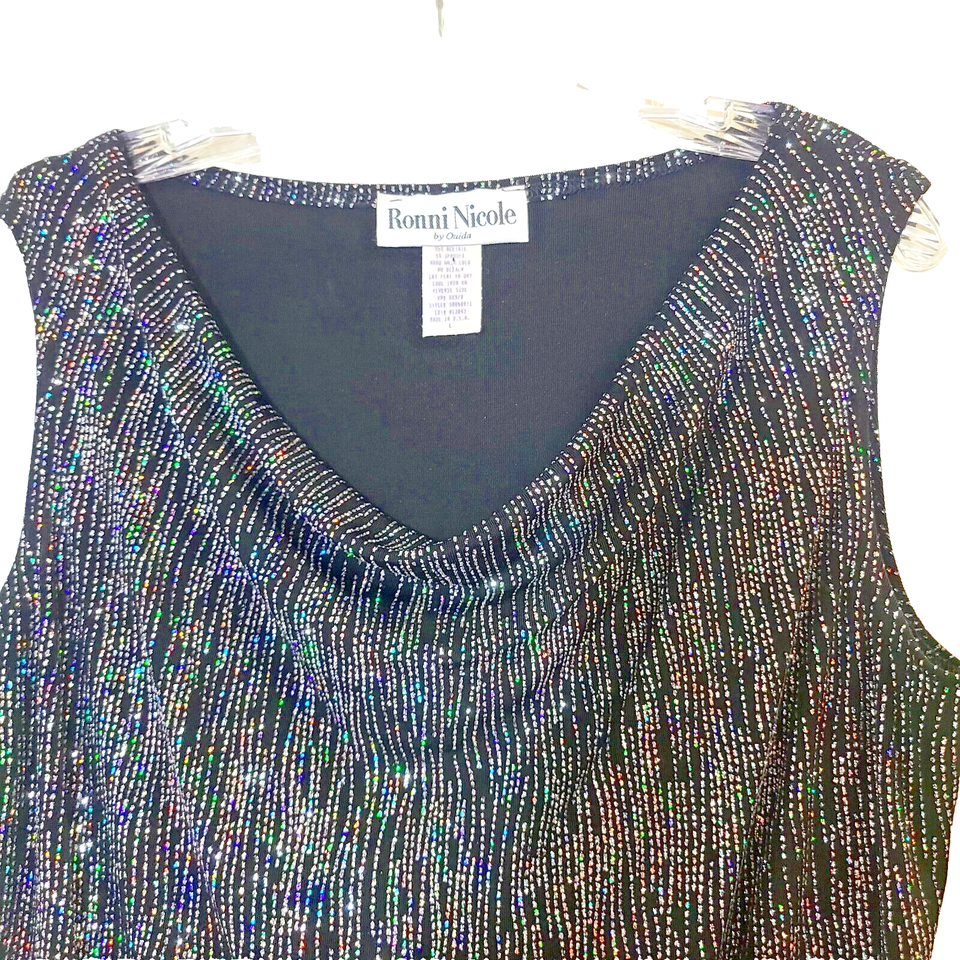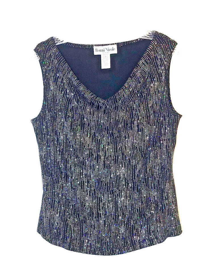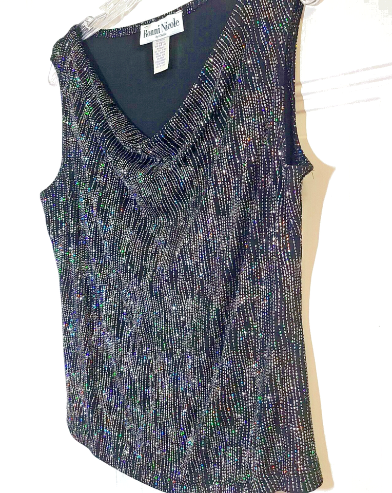 - Y2K 90s Top Size L Ronni Nicole Slinky Sparkly Stretch Knit Drape Cowl Neck Tank