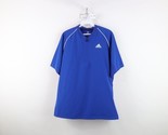 Y2K Adidas Boys XL Spell Out Striped Half Zip Short Sleeve Baseball Jacket Blue