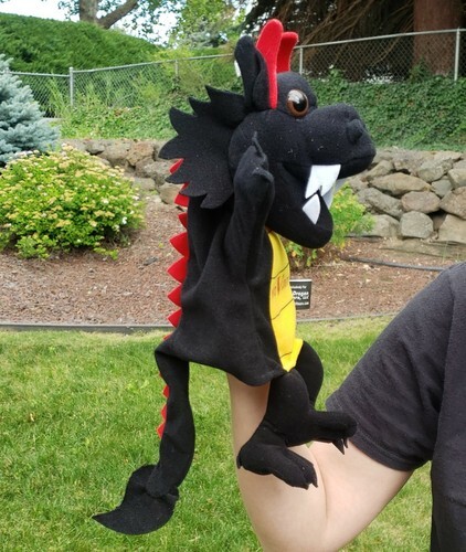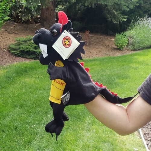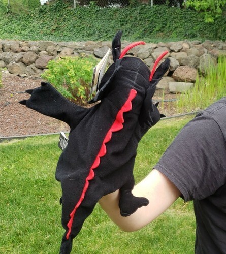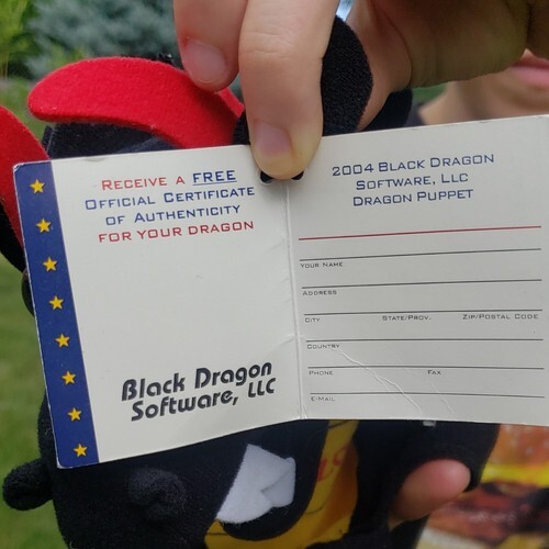 - Y2K Anime Dragon Puppet Promotional Game Software Mascot Glove Plush Black Fire