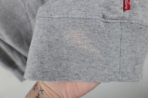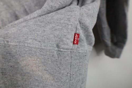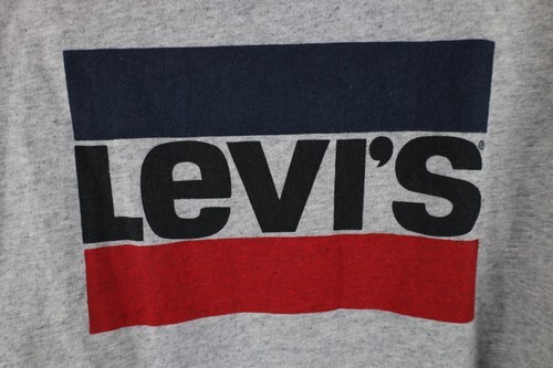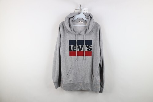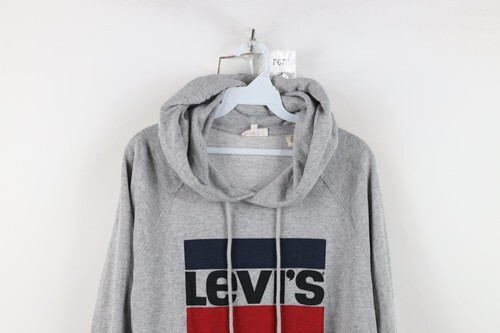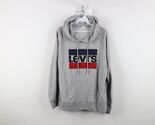 Y2K Levis Mens Medium Distressed Spell Out Box Logo Hoodie Sweatshirt Gray