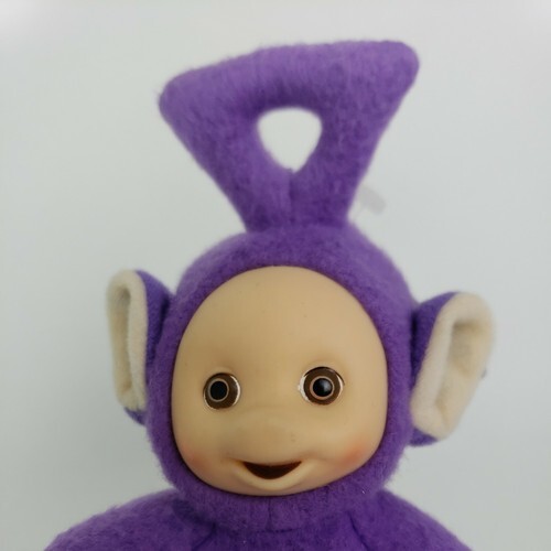 - Y2K Playskool Rubber Face Teletubbies Tinky Winky Doll Beanie Purple 1998 NWT
