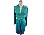 - Y2k Vtg Moda International SPandex Green/Blue Wrap Dress Sz M kimono Sleeves