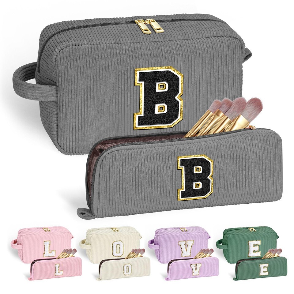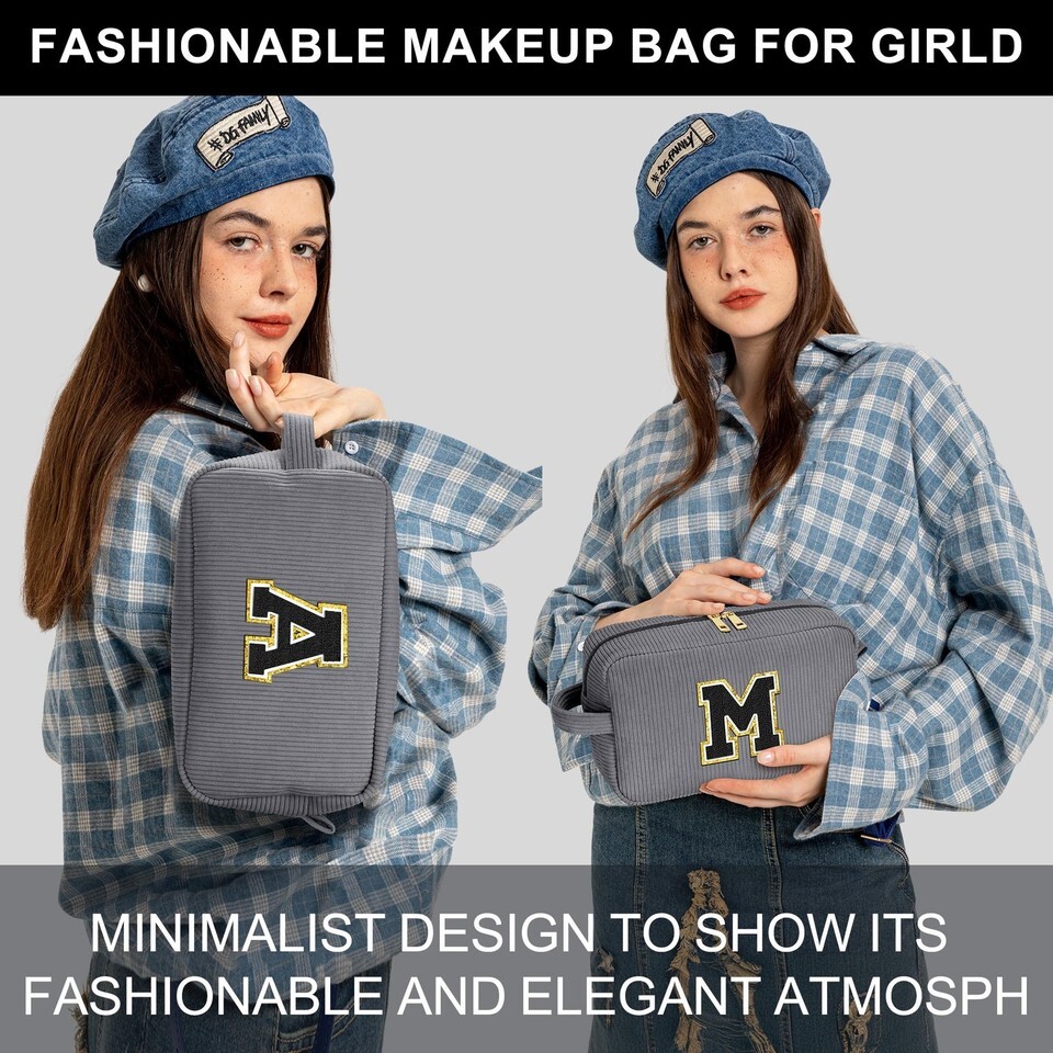 These corduroy makeup bag are designed with multiple divisions and compartments. Personalized letter design can make your makeup bag more Personalized. Double zipper design makes it more convenient to use the bag. Small makeup brush bag holds your brushes.