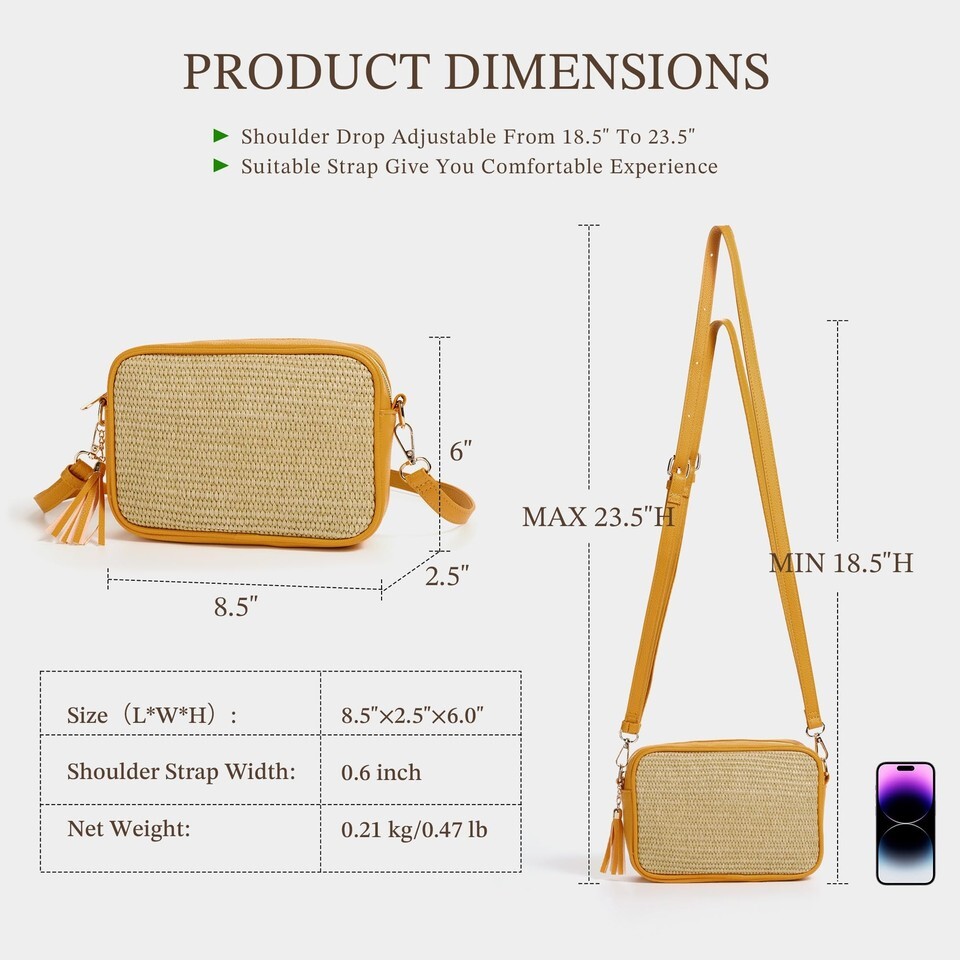 [Wide Applications]: This crossbody purse is perfect for carrying your cosmetics, phone, glasses, power bank and other small items.The natural and earthy look of the crossbody bag makes it easy to match with your garments, it makes it easy for you to carry around small items, and it also perfectly fits to beach vacation and outdoor activities .