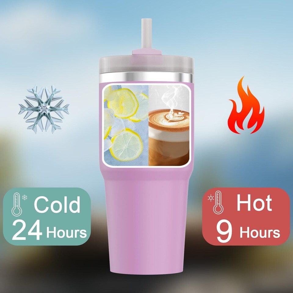 Friendly cup holder: This is an insulated car cup with a straw. Whether you are driving to work or on a business trip, our conical and slender base design of the insulated cup makes it perfectly suitable for most cup holders. Our car travel cup design can prevent overflow when bumping or jogging on the road.