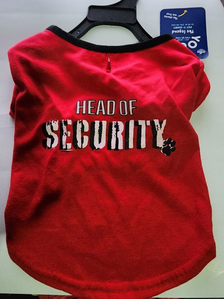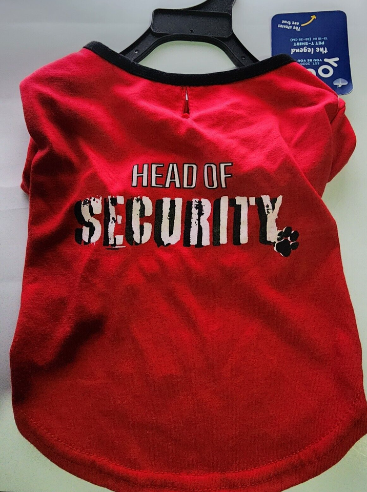 You are Buying a brand New YOULY Head of Security Dog Tee, Large.