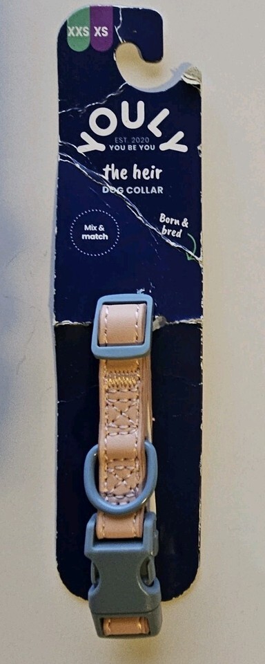 The YOULY The Heir Pink Blue Small Dog Collar is a stylish and adjustable standard dog collar made from faux leather by the brand DO G. Suitable for XXS/XS dog sizes, this unisex collar is perfect for all breeds. Its unique design and vibrant colors make it a fashionable accessory for your pet. Made in China, this unit includes one collar that can be easily personalized with no additional fees.