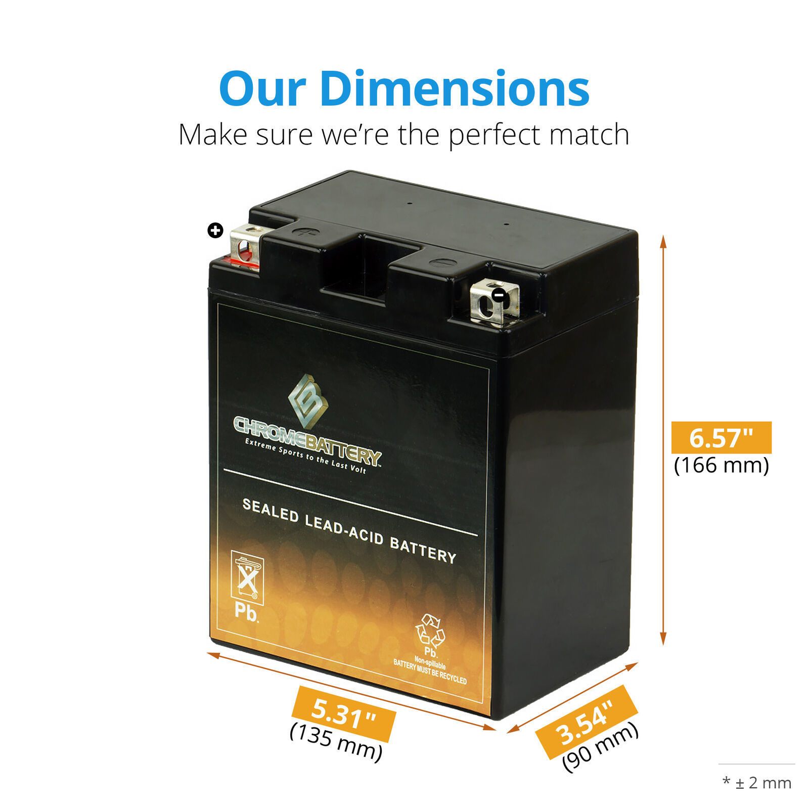 YTX14AH-BS sealed AGM batteries by Chrome Battery Battery are constructed with lead calcium alloy and absorbed glass mat technology that allows for a completely maintenance-free and high-performance operation. All YTX14AH-BS Chrome Battery Battery brand AGM batteries are manufactured with the highest quality materials and rigorously tested to ensure safety, OEM compatibility, effectiveness and optimal performance.