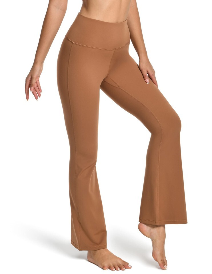 - YUNOGA Women’s High Waist Bootcut (Flared) Leggings in Roasted Brown, Size L